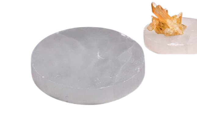 Base Selenite Redonda Lisa 10 cm - Limpeza e Purificação