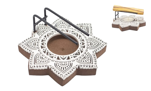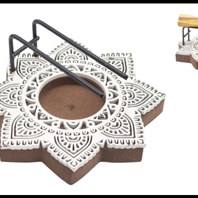 Feito em madeira resistente, este queimador foi pensado para segurar com segurança as tuas tochas e permitir queimar ervas, resinas ou bombitas de incenso de forma prática e estável.
